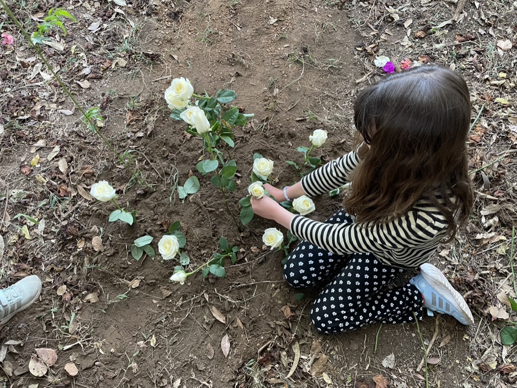 30 de enero de 2022. La casa de Valle se rentó. Antes de entregarla a sus nuevos inquilinos, llevamos las cenizas de Adriano y Sabine para enterrarlas en el jardín. AquelSeñor, las mijitas y yo en vivo. Hicimos una pequeña ceremonia virtual con mis papás y mi hermano. Las mijitas enterraron rosas blancas sobre las tumbas mientras el resto de la familia les dedicamos palabras a los cuatro perritos. Fue la última vez que toda la familia convivió.